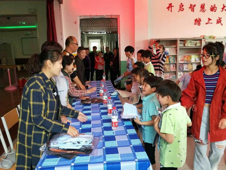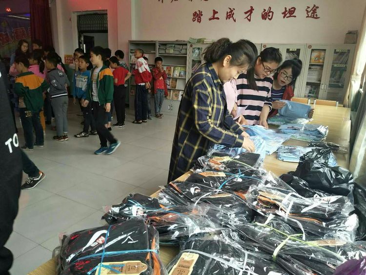 为孩子们现场发放崭新的夏装