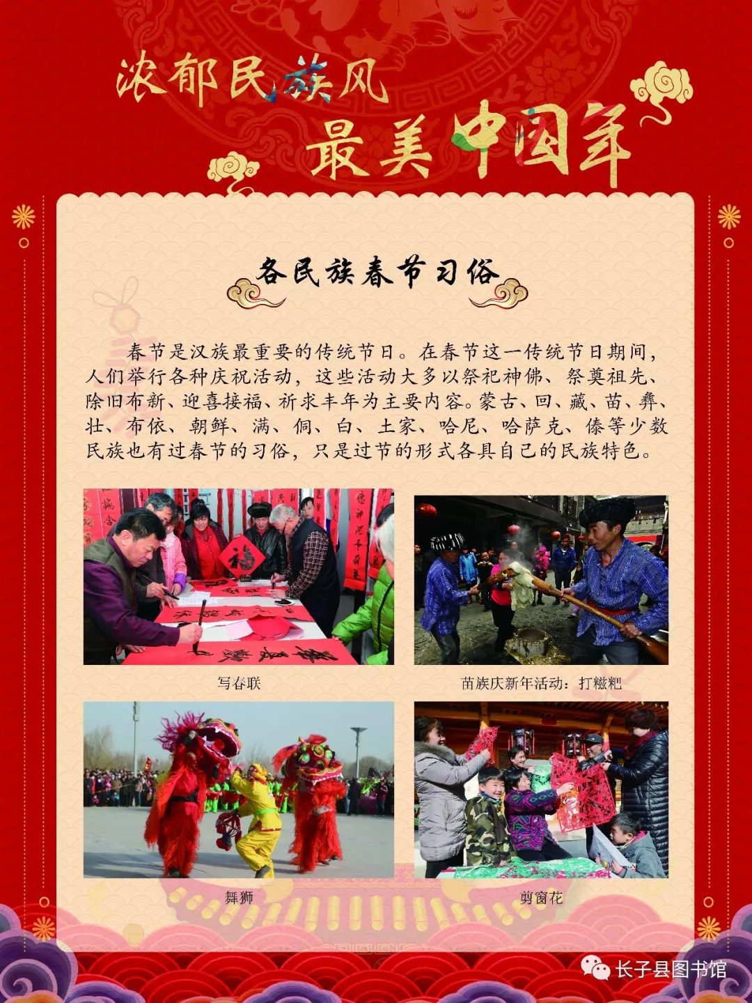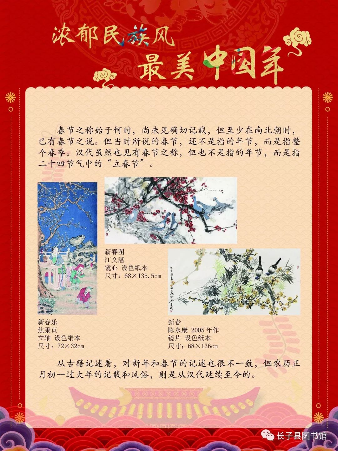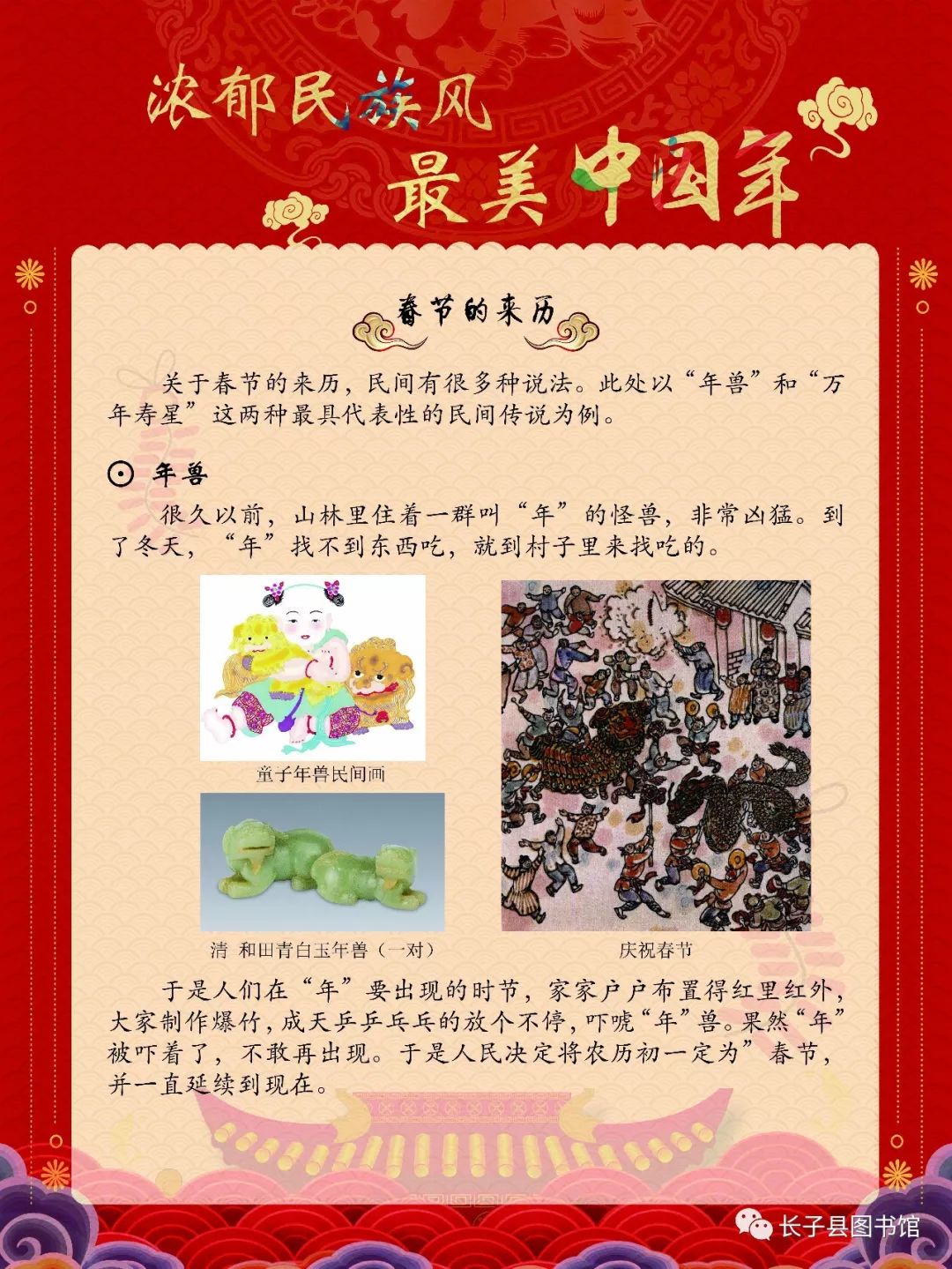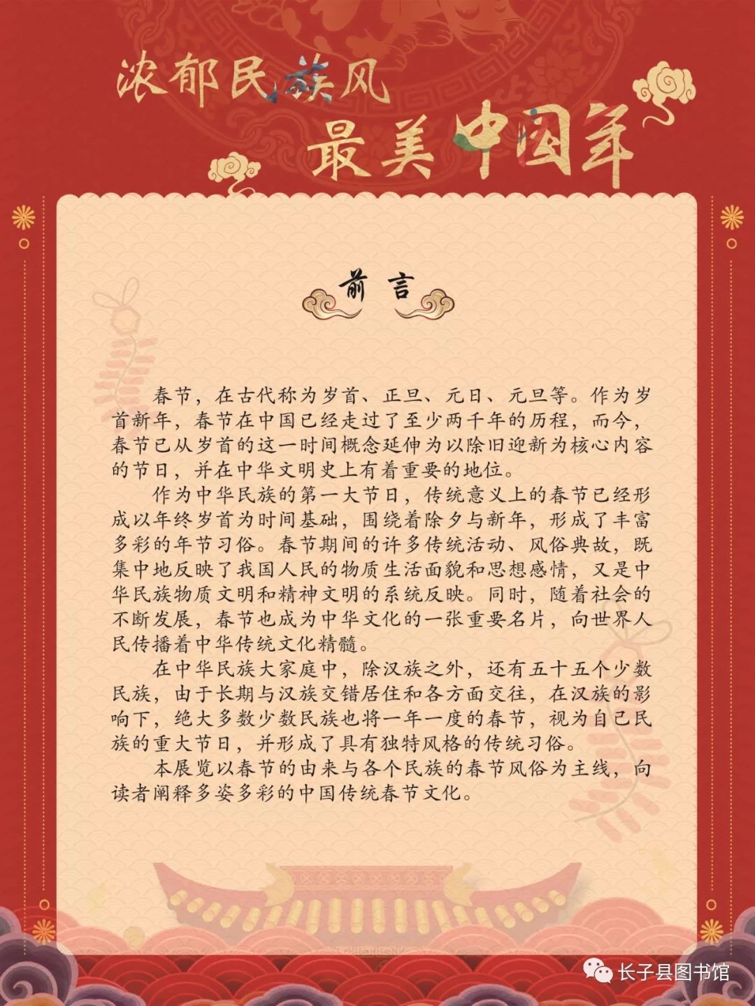 本展览以春节的由来与各个民族的春节风俗为主线,向读者阐释多姿多彩的中国传统春节文化。