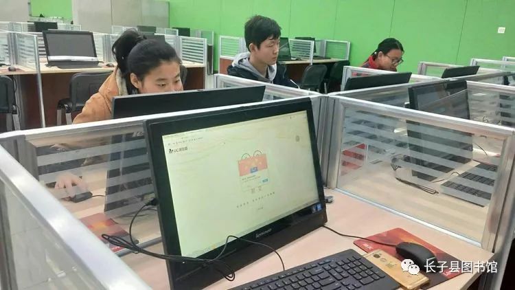 看晚会直播的晚上学生们正在电子阅览室网上阅读