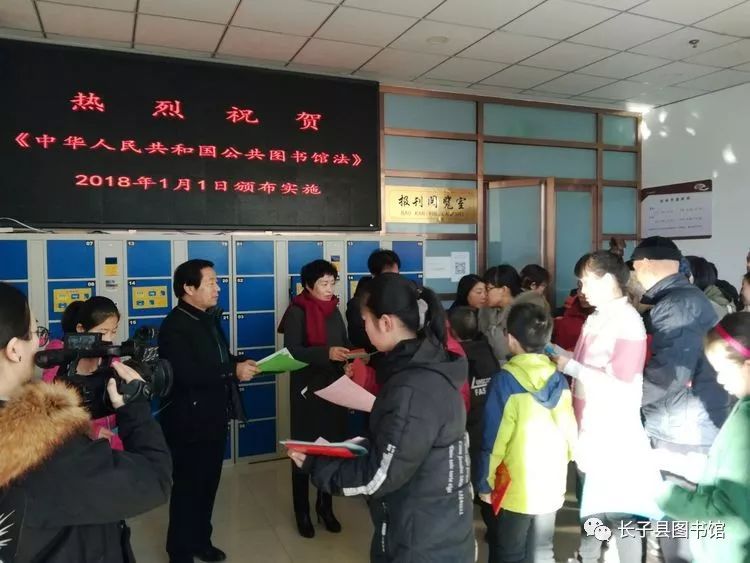 仪式后,副县长刘爱红,宣传部副部长李智秀,文化局局长李照楠,图书馆馆长张丽香为读者散发《中华人民共和国图书馆法》、长子县图书馆服务介绍等宣传资料。