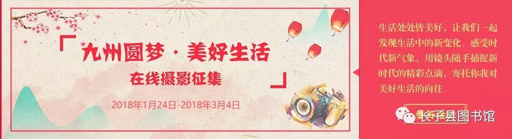 为响应党的十九大报告精神,在数字阅读平台上展示新时代各地春节特色文化及生活风貌,推广工程将在去年活动规则和程序基础上继续通过微信平台向全国公众征集多主题摄影作品;经筛选整理后通过专题页面对优秀作品进行展示,并为其拍摄者颁发小礼品。获奖名单将于活动结束后在推广工程微信公众号上公布。